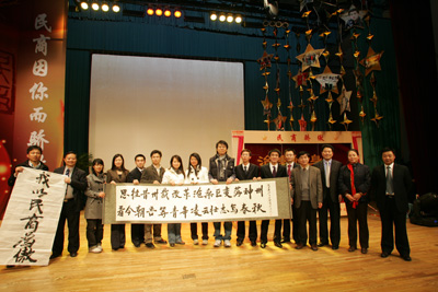 “民商骄傲”活动于10月16日正式开始投票,发出选票1945张,收回有效选票高达1805张。经过近两个月的评选工作,有十大人物或团体脱颖而出,赢得了“民商骄傲”的殊荣,教师代表分别为获奖同学或团体颁奖并表示祝贺。