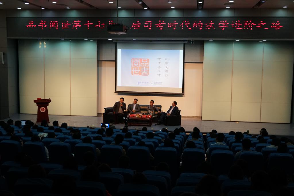 第“七期评书阅世论坛——后司考时代法学进阶之路”活动在刘皇发学术报告厅如期举办。本次活动邀请到毕业于戴鹏老师、左宁老师、李佳老师作为本次活动的嘉宾。在此次活动中,三位老师与到场的同学分享了法学学习的方法和司法考试的备考经验,全面剖析了司考改革,为初入法门的法大学子答疑解惑,为司法考试应考学生指点迷津。来自各个学院数百位同学参加了本次活动,现场气氛热烈。