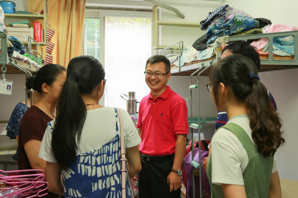 迎新过程中,学校及学院领导给予了大力地支持和亲切慰问。9月2日清晨,校党委书记胡明、校长黄进、党委副书记兼副校长常保国与相关部门领导来到学院展台了解报道情况,校领导对学院学生组织开展的迎新工作予以高度评价,鼓励大家继续认真工作。学院分党委书记王洪松也密切关注迎新工作的进展情况,多次与迎新工作者交流指导,并深入宿舍看望新生、与家长交流。在宿舍,王洪松书记细心询问新生的情况,热切地欢迎各位新生的到来。中途,王洪松书记还遇到了刚刚入住的维吾尔族与哈萨克族同学,并代表学院向他们献上古尔邦节的祝福。17级辅导员张葆、陈莹蓝老师也为迎新工作做了充分的准备,从分发新生材料、办理入住手续,到设计温馨提示、加强安全教育都安排的井井有条。