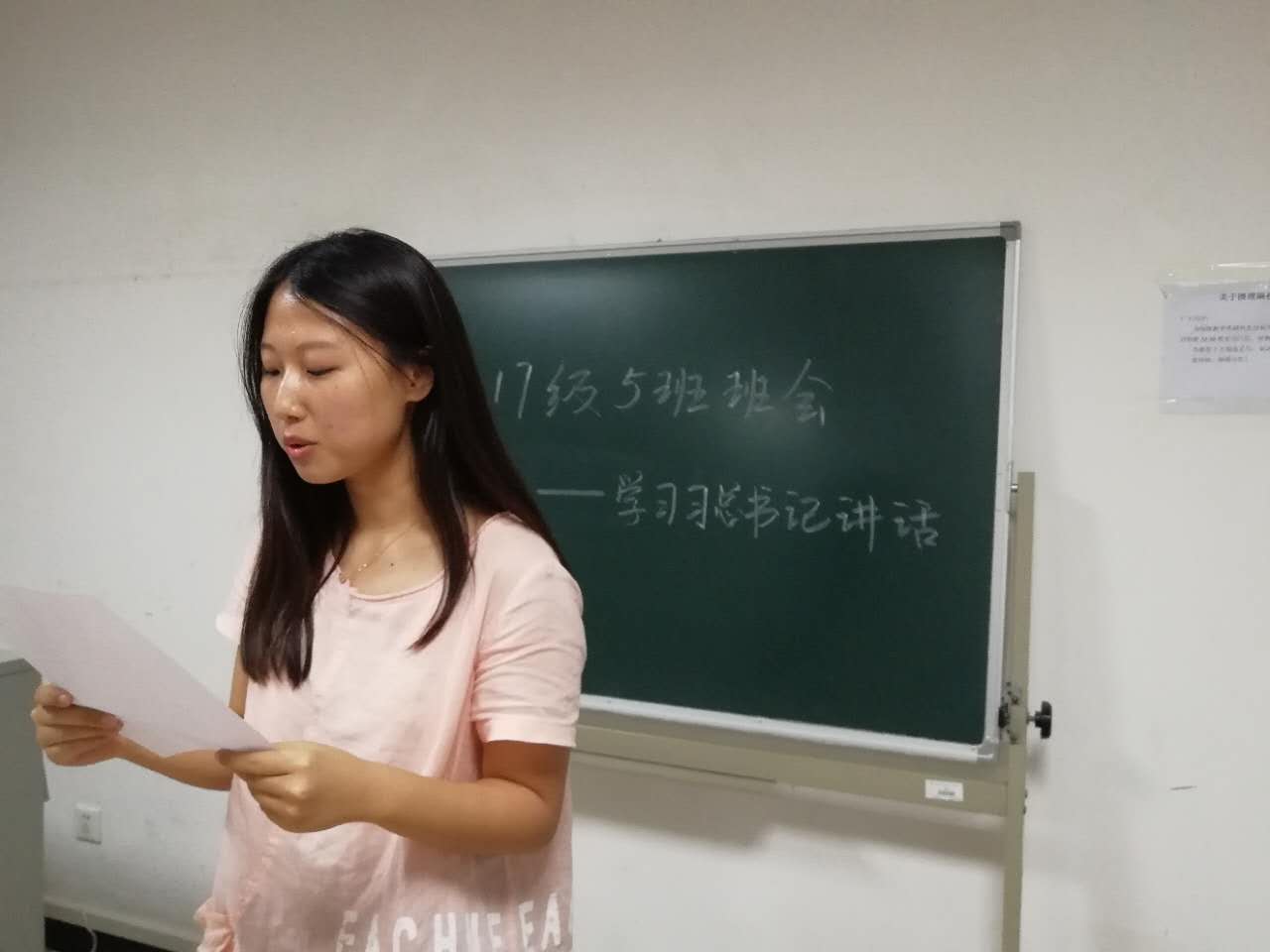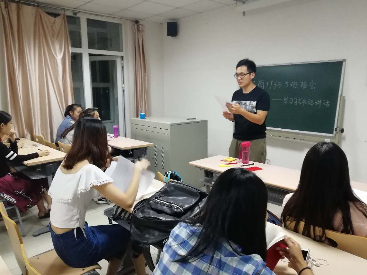 17级5班全体研究生首次齐聚新一楼教室,召开新学期第一次班会——暨学习习近平总书记考察我校时重要讲话主题班会。本次班会的主要内容是学习习近平总书记讲话内容并交流学习心得体会。