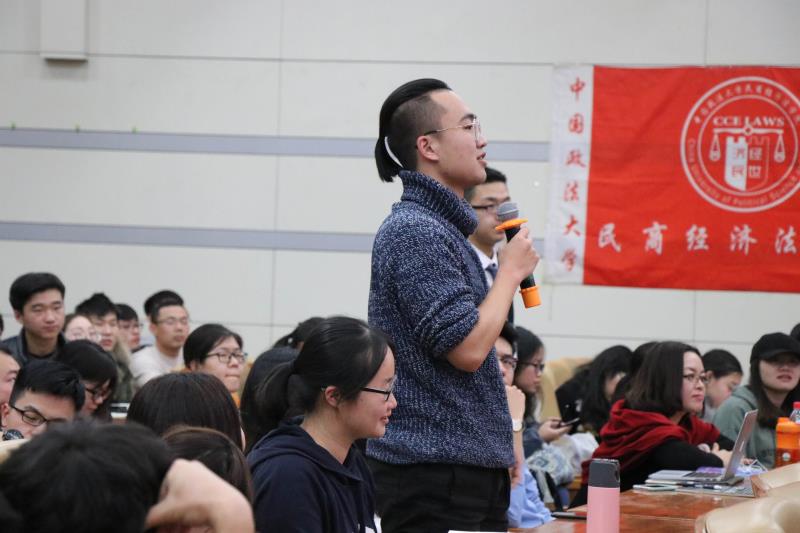 在同学提问环节,几位同学从宏观到具体的多方面就民法典与商事立法相关问题与老师进行了深入的交流。老师亲切耐心地就同学们的问题进行了解答。