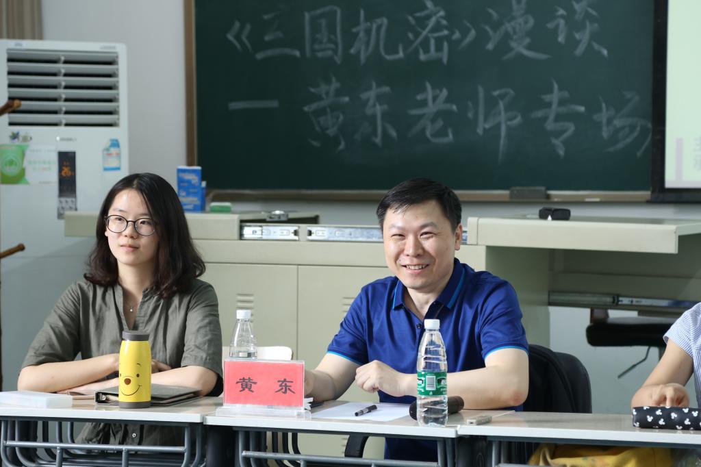 接下来的提问环节,当同学质疑赤壁之战的真实性,黄东老师从《三国演义》的说书性和历史的偶然性耐心解答了这个问题;当被问及曹操败走华容道时,他认为关羽放走曹操的事件在真实中是不存在的;当有同学问到关于中国文化如何能更好地传播以带动整个国家发展的问题时,黄东老师作出了有见地的答复,并举了生活中的事例,形象生动地向大家说出了自己朴素而深刻的看法,令大家耳目一新。