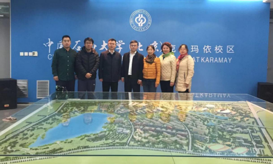 2018年10月18日,学院党委书记王洪松、国内合作处处长刘建一行,赴中国石油大学(北京)克拉玛依校区看望刘丹、张东两位援疆教师。