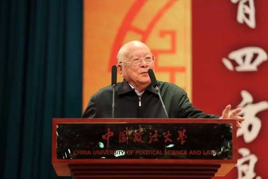 最后,江平先生上台发表讲话,他对获奖同学表示祝贺,对参与江奖评选和颁奖的师生表示感谢。随后,江平先生结合对“宪法是万法之父,民法是万法之母”这句话的理解,阐述了自己对《民法总则》和民法典编撰的几方面的认识与建议。