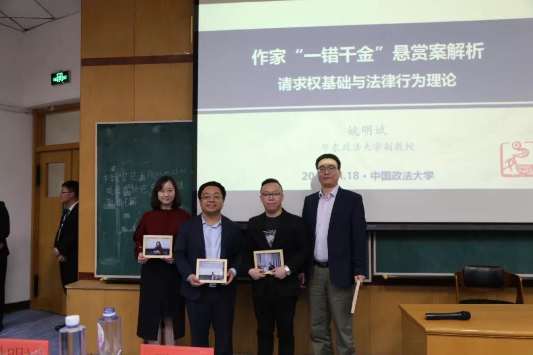 最后,由于飞教授向主讲嘉宾姚明斌老师颁发奖牌,由办公室的工作人员为各位嘉宾献上礼物。法学新观察系列讲座第一讲正式结束。