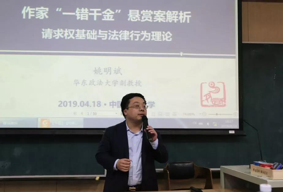 本次讲座的主题为作家“一错千金“悬赏案解析:请求权基础与法律行为理论。邀请到华东政法大学副教授、硕士生导师姚明斌老师主讲,黑料网