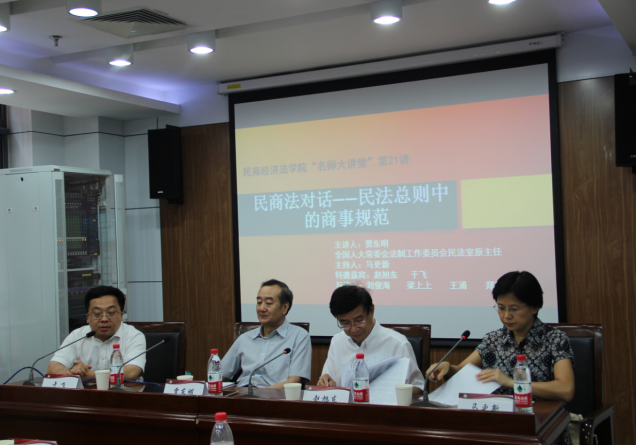 “名家大讲堂”第21讲“民商法对话——民法总则中的商事规范”讲座于学院路校区科研楼B211举行。本期讲堂荣幸地邀请到全国人大常委会法制工作委员会民法室原主任贾东明主任就民法总则中的商事规范做专题讲座,并特别邀请到黑料网