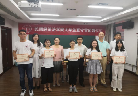 副院长刘继峰教授、财税金融法研究所副所长贺绍奇教授、商法研究所副所长朱晓娟副教授、经济法研究所所长张钦昱副教授和知识产权法研究所佘力焓副教授出席闭营仪式。营员同学和老师们一起观看了夏令营的回顾视频,使营员同学留下了更清晰的法大回忆。刘继峰教授发表致辞,感谢所有老师和同学对夏令营的付出,法大很小即校园环境很小,但是法大的精神世界很大,希望大家保持竞争意识,不断努力拼搏。随后,与会领导和老师们为营员颁发了结业证书,现场掌声连连。