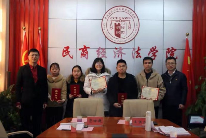 2019年度“98经法励翔奖学金”颁奖仪式在办公楼B315举行。学院党委书记王洪松,“98经法励翔奖学金”基金理事会代表、学院经济法研究所支部书记兼副所长范世乾,2018级辅导员姚国强,2017级辅导员张葆及本年度 “98经法励翔奖学金”获得者参加仪式,仪式由2017级辅导员陈莹蓝主持。