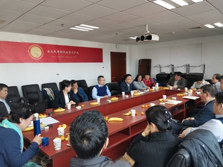 于飞向与会老师介绍了有关学院科研和外事工作。他指出,学院科研成果取得可喜成绩,科研论文多项指标统计名列第一,在全体教师努力下,学院是全校申报科研项目最多的学院,实现7人成功立项国家社科基金项目,8人成功立项司法部项目,1人立项北京社科基金项目。外事工作上,积极开拓外事工作新局面,不断提升对外国际影响力,开设国际课程22门,引进德国、美国、法国、加拿大等长期、短期高端外国专家共计17人,与美国、韩国和匈牙利等海外大学建立合作关系。