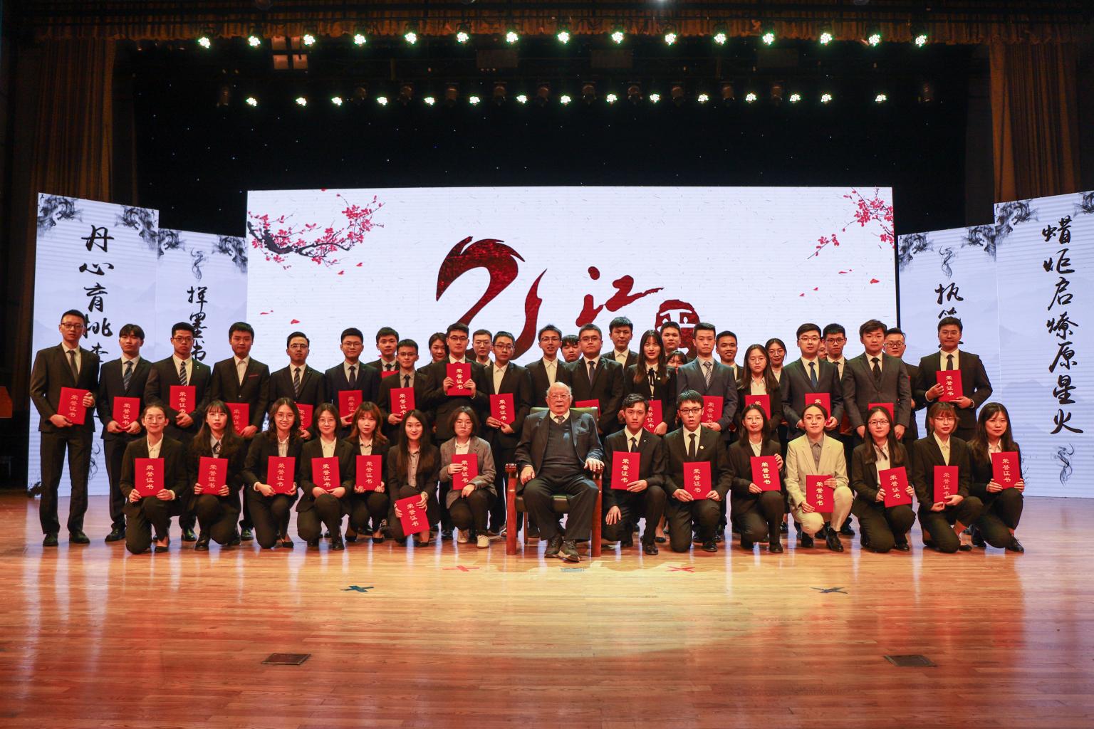 揭奖环节在主题视频和文艺表演中分批进行。典礼通过主题视频的方式分“辛勤破千夜,收此一寸玉”“ 研尽一寸墨,扫成万仞峰”“ 翰墨藏真意,千古仰其光”三个篇章对江平先生的一生和江平民商法奖学金走过的二十一年历程进行了诠释,歌曲《不忘初心》,舞蹈《春和景明》表达了后辈学者与学子对江平先生崇高精神的致敬与传承,获奖同学代表先后发言,表达了对支持自己的江平先生的感谢、祝福和对“法治中国”理想的追求。