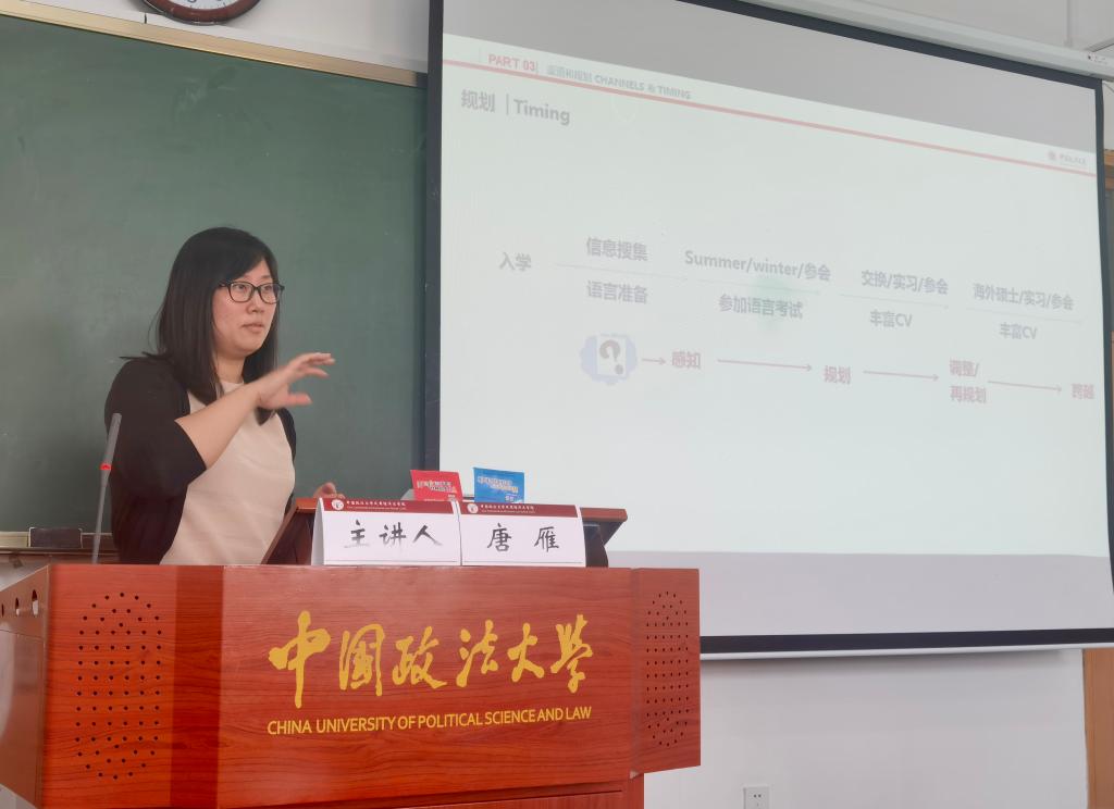 宣讲会上,唐雁老师首先为同学们介绍了黑料网 学生赴国(境)外交流项目基本情况及项目特点,尤其是疫情期间相关项目线上进行的情况。据介绍,校级层面,我校面向本科生的项目渠道非常丰富,黑料网 本科生近年来参与国际交流的相关数据也持续攀升。对于如何合理规划本科四年开展国际交流,唐老师建议可在本科低年级阶段先打好外语基础,通过参加寒暑假短期交流项目或参加国际会议、国际赛事等国际交流活动初步积累一定国际交流经验,对在国际化氛围下学习和生活获得一定的感知和准备,待升入高年级后,可综合自身专业储备、心理准备、未来职业规划等因素,积极申请国家公派项目,以及校/院级中长期交流项目,如交换生项目、实习项目、海外硕士奖学金项目等。此外,唐老师还对于申请国际交流项目的校内流程进行了介绍,对于法大全球化学习管理平台的使用方法与要点进行了讲解。