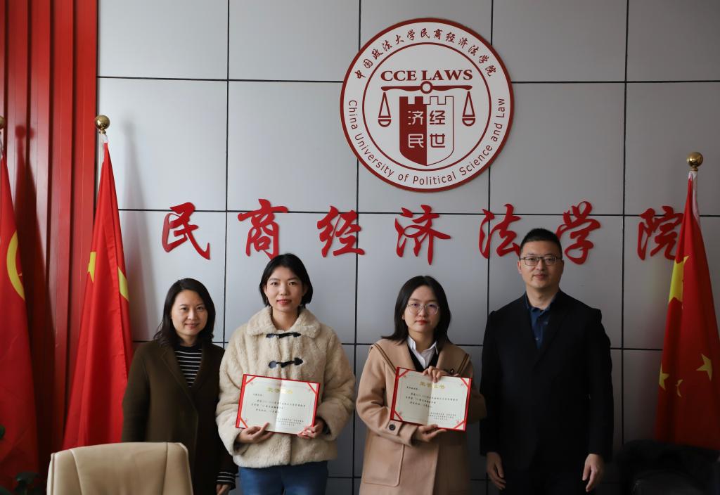 陈莹蓝介绍了本年度“98经法励翔奖学金”评选情况,学院按照公平、公正、公开的原则,认真评选,严格操作,经个人申请、年级初审、学院审核、基金理事会审核、公示等程序,共有10名学生获得本年度“98经法励翔奖学金”。王彤副书记和范世乾老师共同为获奖者颁发了荣誉证书并合影留念。