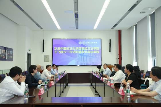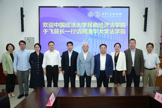 由院长于飞带队前往清华大学法学院开展调研座谈,一行人员包括副院长刘继峰、朱晓娟、于文轩、戴孟勇及院办主任于丽,清华大学法学院院长周光权、副院长程啸、高丝敏、龙俊、党委副书记陈杭平参加座谈会。
