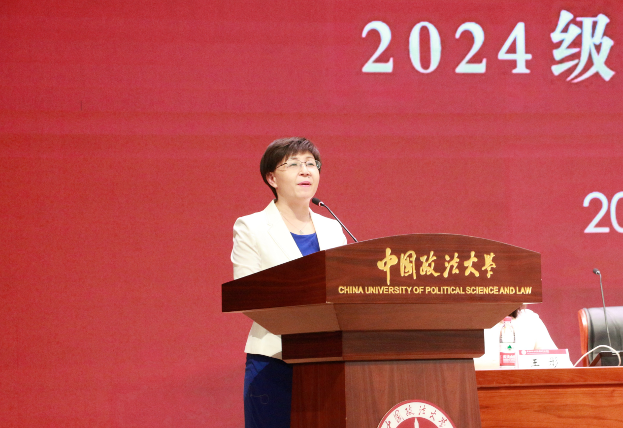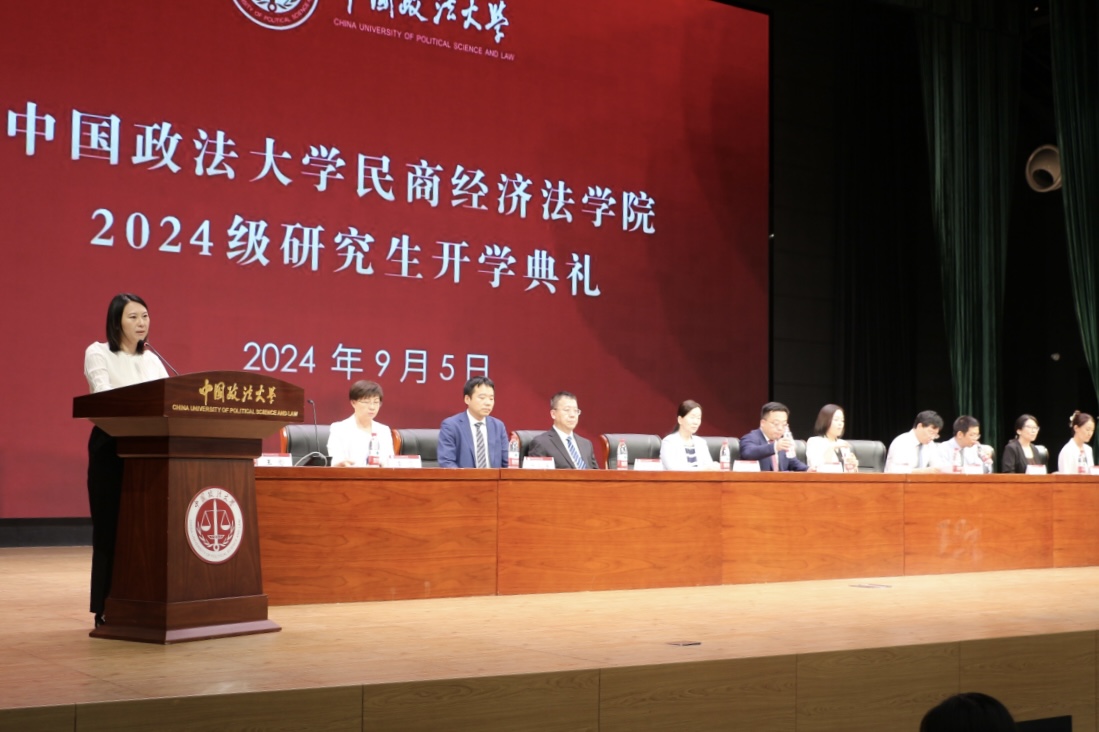 李蕊教授作为导师代表发表精彩致辞,她热烈欢迎新同学们的到来,一起“遇见法大、情定民商”,开启研究生新征程。她指出在研究生阶段,同学们要努力实现从知识的输入者向输出者转变,具体有以下三点建议:一是脚踏实地、系统训练。通过大量专题研究提升法律推理、语言表达和逻辑思维等能力;二是仰望星空、兼容并蓄。以开放包容的心态,不断超越既有的知识体系去发现、去探寻;三是拥抱时代、质疑思辨。在静心读好圣贤书的同时,两耳多闻窗外事。她殷切的希望同学们能够“给时光以生命”,以梦为马、不负韶华!