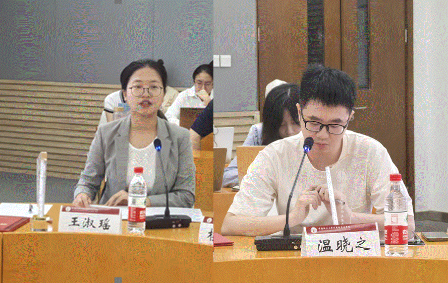 获奖学生代表王淑瑶、温晓之同学发表感言。王淑瑶同学结合自身论文写作过程表示学术研究是曲折的,提出需要在热爱的领域持续深耕并享受成果的快乐。温晓之同学从观察现行法问题、平衡生活和研究的时间、坚持外语学习用好比较法资料三点分享论文写作经历。