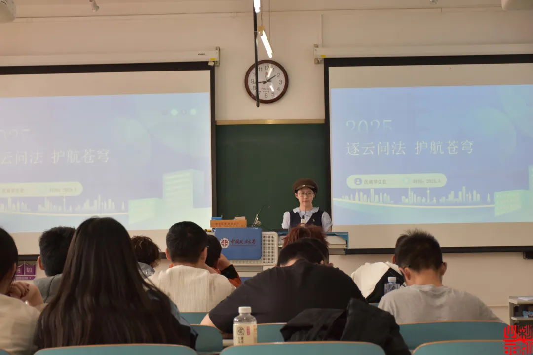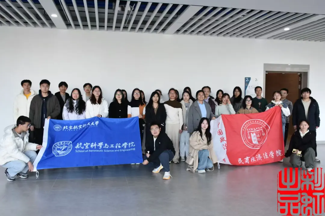 3月23日上午,北航学子来到法大校园,由我校同学为北航同学进行校史的讲解,一同走近我校支持中国法治事业发展的峥嵘岁月。两校同学共同学习习近平总书记考察法大重要讲话精神和勉励语精神,就新时代青年的责任展开了深入探讨,激励两校学生为教育强国、法治中国建设努力奋斗。在普法宣讲中,我校同学立足复合型人才培养需求,创新性地将《民用航空法》、《民用机场管理条例》等专业法规与航空航天实践相结合。通过分析C919适航认证案例和无人机空域管理案例,帮助北航同学理解法律规范如何为科技创新保驾护航,引导同学们从技术研发者视角思考法律合规要点,为联合开展学术研讨、跨学科研究提供了生动实践。