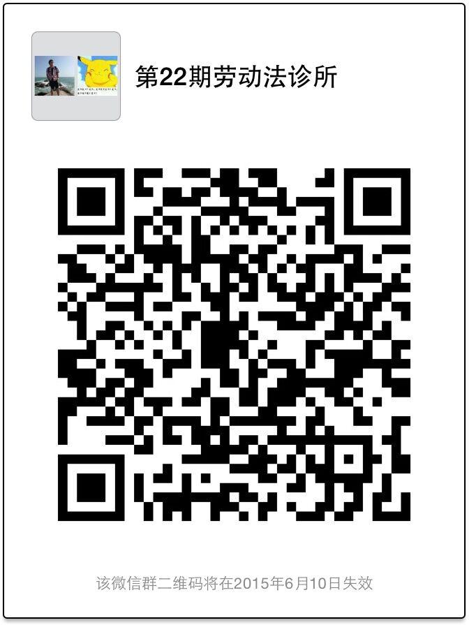 6.请被录取的同学扫描上方提供的第22期诊所微信群二维码加入该群,然后与联系人 吴铮 联系,以便联系人记录各同学联系电话、电邮地址,制作通讯录,安排各位同学的值班时间和分组。