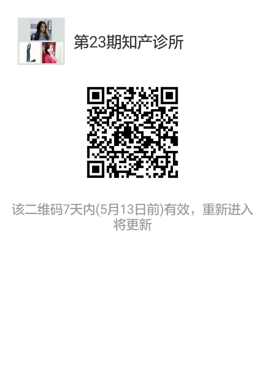 4、 请被录取的24名同学抓紧扫描以下二维码,加入微信“第23期知产诊所”群聊,并修改昵称为真实姓名。
