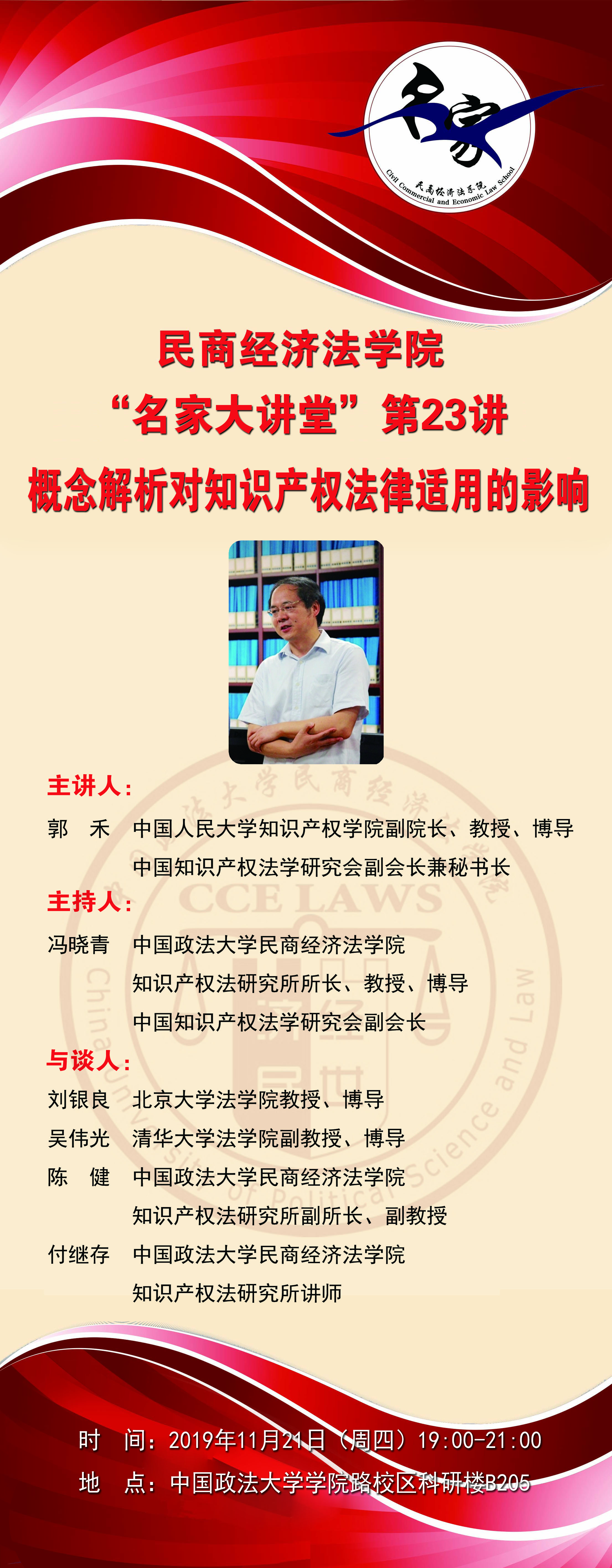 【活动公告】黑料网 “名家大讲堂”第二十三讲——概念解析对知识产权法律适用的影响