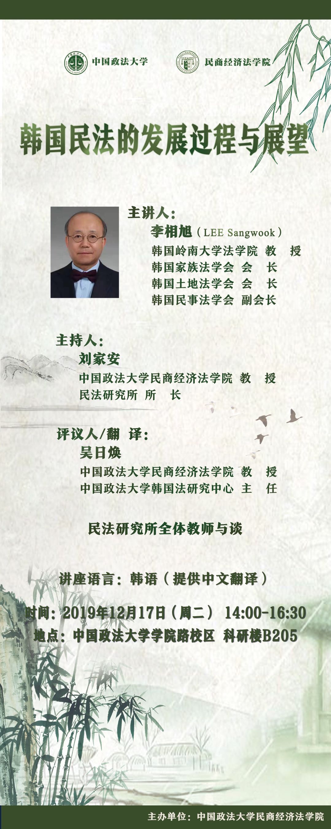 活动公告】韩国岭南大学李相旭教授讲座:韩国民法的发展过程与展望