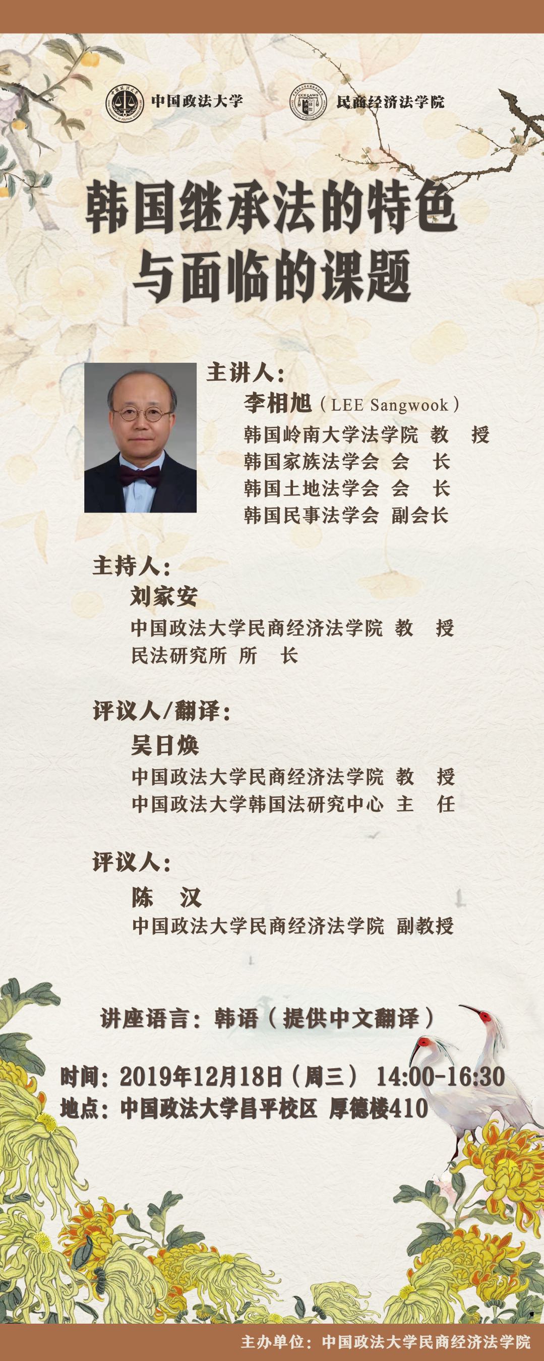 【活动公告】韩国岭南大学李相旭教授讲座:韩国继承法的特色与面临的课题