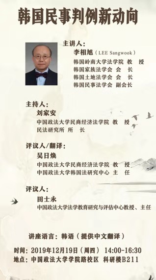 【活动公告】韩国岭南大学李相旭教授讲座:韩国民事判例新动向