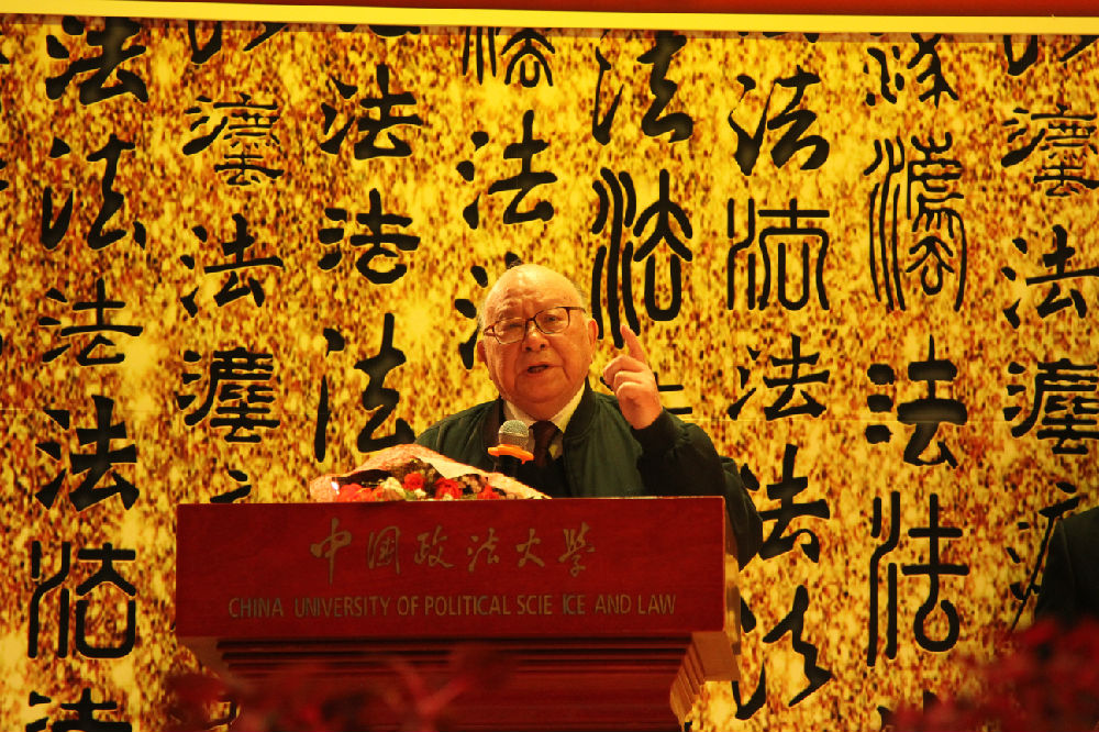 最后,江平先生在同学们热烈的掌声中上台讲话。他向躬耕于法大民商法教学一线的老师们表示感谢,希望老师们能够担负起自身的教育使命和责任,通过扎实的教学和言传身教,培养出更多优秀的学生。同时,江平先生语重心长地寄语同学们,要珍惜在校学习的时间,打牢自身专业学习基础,不论遇到什么样的工作和生活环境,都要永远保持一颗赤子之心。随后,江平先生向所有的获奖者颁发了江平奖学金奖牌及证书,并与20位获奖者合影留念。