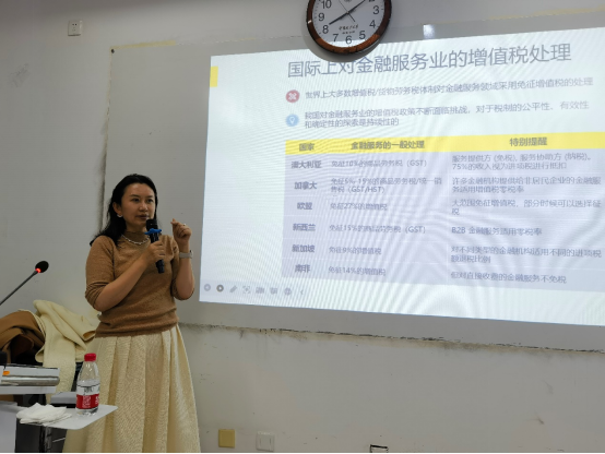 在讲座的第二部分,沈总探讨了不同金融业务模式中的增值税难点问题。该部分首先概览国际上对金融服务业的增值税处理,并指出中国金融业增值税极为特殊,引出金融业增值税制度设计原理及难点,强调我国金融服务业的增值税政策不断面临新的挑战。之后逐一展示现有金融机构的不同类别和所对应的增值税税率,总结金融行业特点,结合现有不同金融业务下的增值税政策与实际运用,提炼出我国核心金融业务的制度完善诉求。
