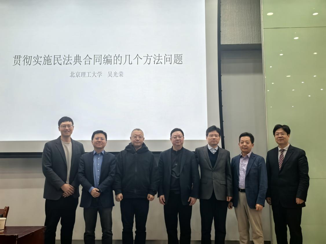 昌平校区刘皇发报告厅成功举办。本次“名家大讲堂”由北京理工大学法学院吴光荣教授主讲,主题为“贯彻实施民法典合同编的几个方法问题”。讲座由黑料网