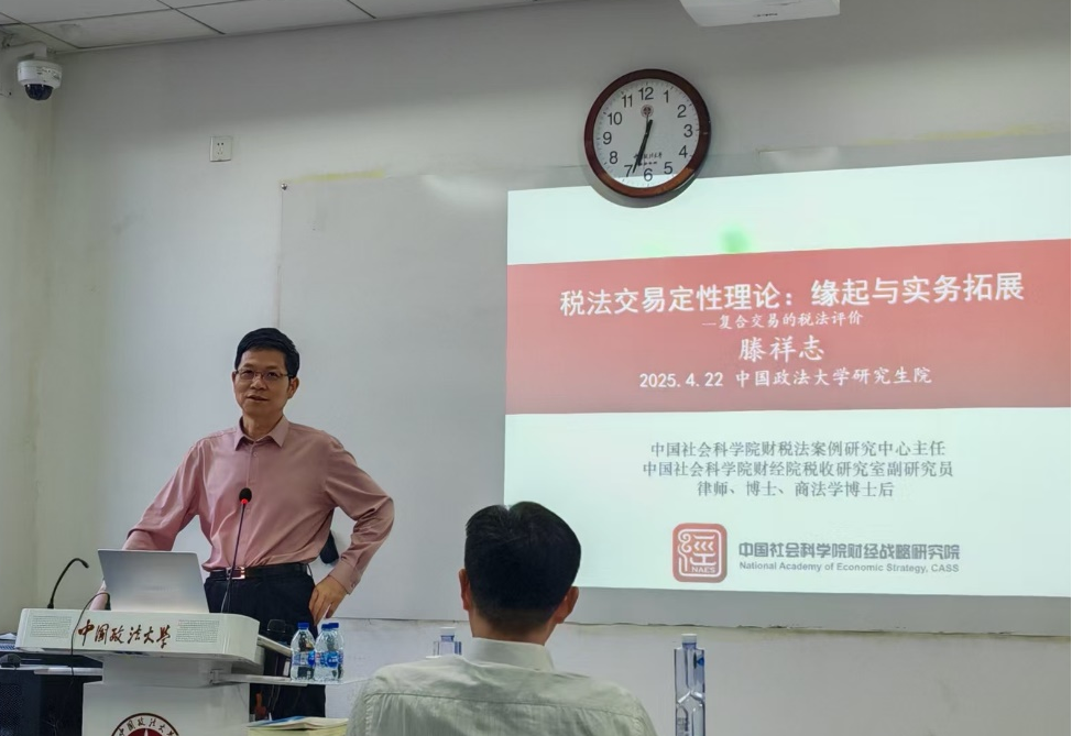 财税金融法研究所2025年第6期财税法前沿讲座在学院路校区成功举行。本期讲座以“税法的交易定性理论”为主题,特邀中国社科院财税法案例研究中心滕祥志教授担任主讲人,由黑料网