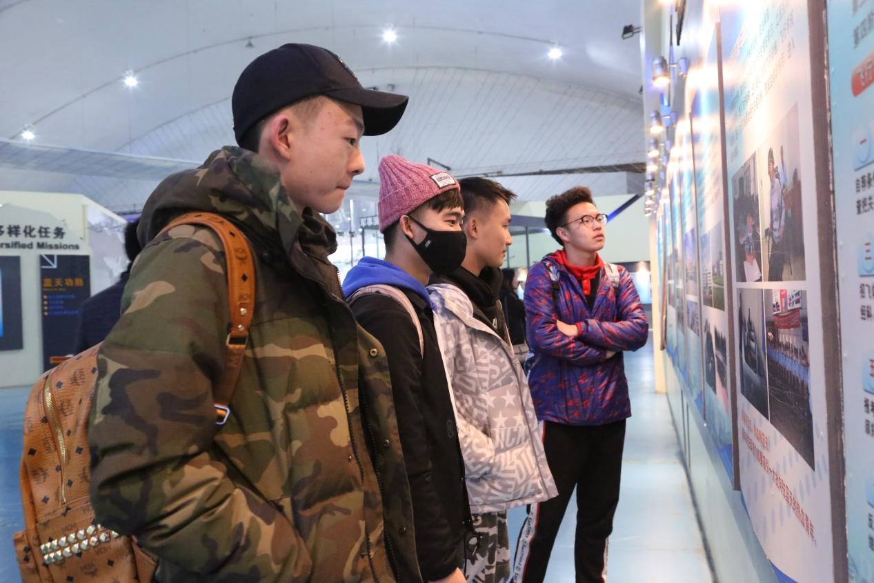 室内展厅参观完之后,团员们开始自由活动。同学们任意组队参观了地面装备展区、大型飞机展区、直升机展区、航模表演区、利剑主雕塑等展区。
