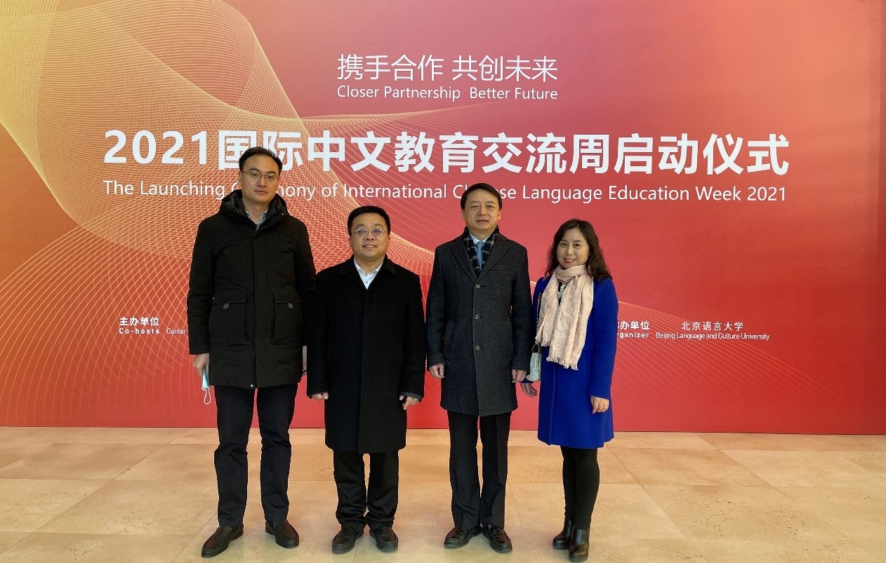 On the morning of December 13, 2021, the "International Chinese Language Education Week 2021 (the ICLEW 2021) - Closer Partnership, Better Future", hosted by the Sino-foreign Language Exchange and Cooperation Center of the Ministry of Education (Language Cooperation Center), was held at Wutong Auditorium of Beijing Language and Culture University. Vice Minister of the Ministry of Education and Chairman of the National Language Commission delivered a speech and awarded plaques for the new research centers for international Chinese language education. CUPL President Ma Huaide received the plaque for the Law Research Center for International Chinese Language Education, CUPL, at the launching ceremony. Yu Fei, Dean of the Civil, Commercial and Economics Law School and Li Dandan, Director of the Confucius Institute Office of CUPL attended the ceremony too.