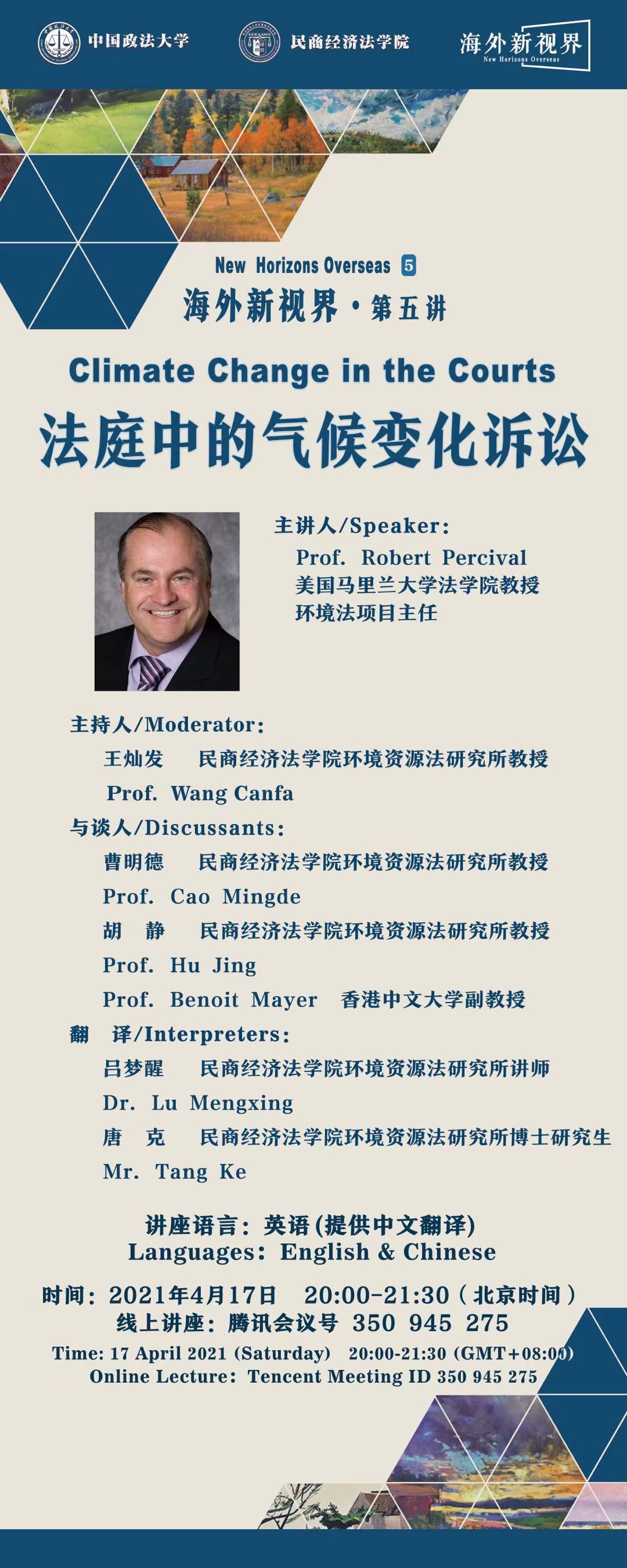 New Horizons Overseas: Lecture 5 - "Climate Change in the Courts" by Professor Robert Percival, University of Maryland