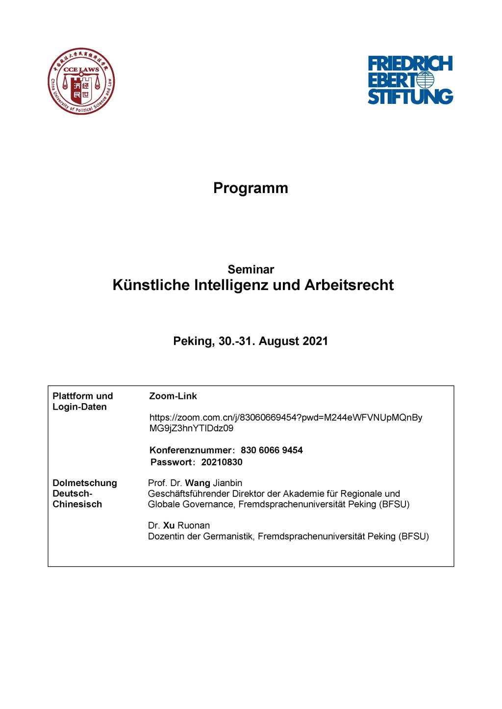 [Webinar Notice] Sino-German Seminar on AI and Labor Law (languages: Chinese & German)