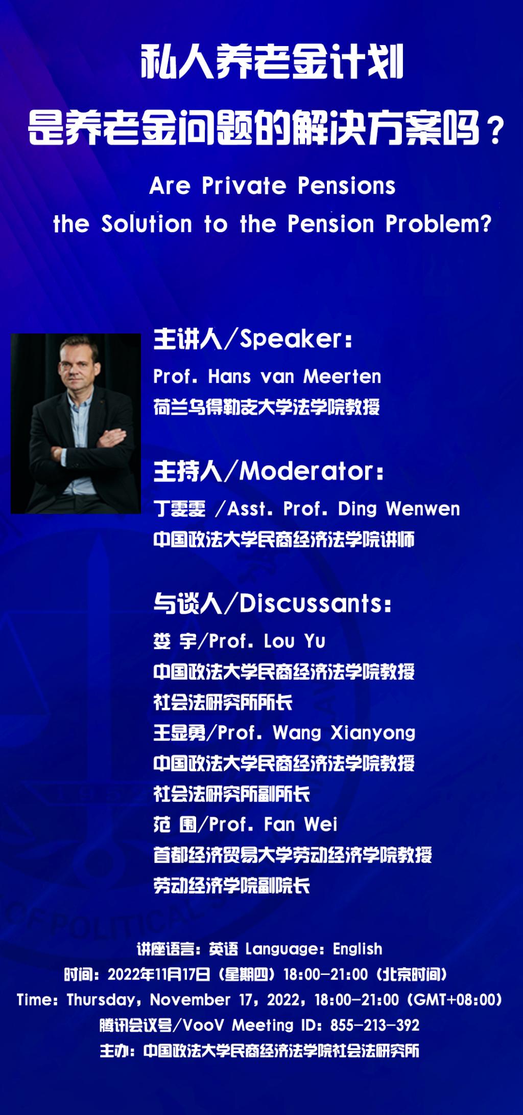 Lecture on "Are Private Pensions the Solution to the Pension Problem?" by Professor Hans van Meerten,Utrecht University