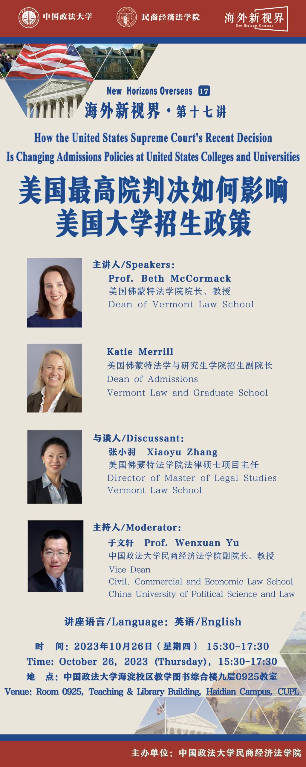 New Horizons Overseas: Lecture 17 | How the United States Supreme Court's Recent Decision Is Changing Admissions Policies at United States Colleges and Universities by Professor Beth McCormack & Katie Merrill, Vermont Law School