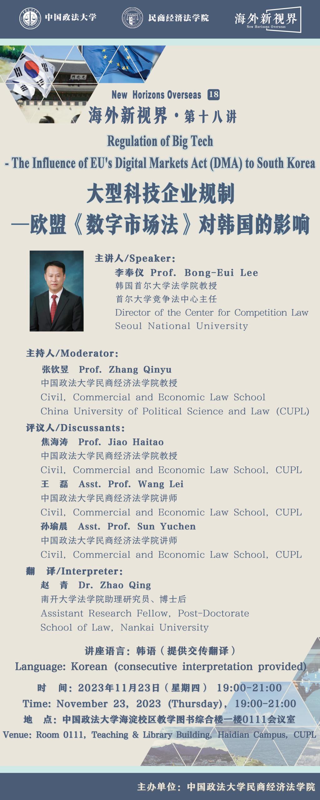 New Horizons Overseas: Lecture 18 | Regulation of Big Tech - The Influence of EU's Digital Markets Act (DMA) to South Korea by Professor Bong-Eui Lee, Seoul National University