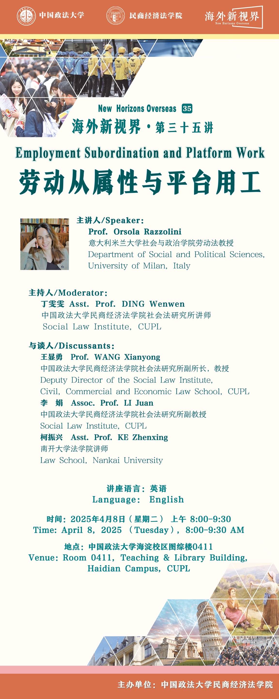 New Horizons Overseas: Lecture 35 | Employment Subordination and Platform Work by Prof. Orsola Razzolini, University of Milan, Italy