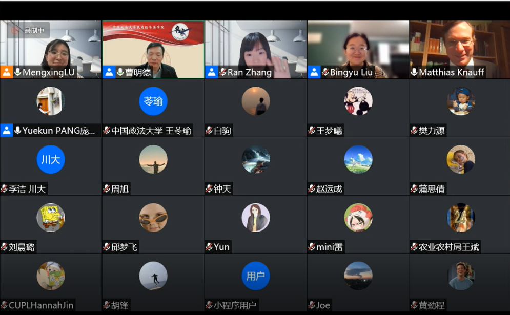 The speaker was Professor Matthias Knauff, the Chair Professor of public law at the Friedrich Schiller University in Jena and the judge at the Procurement Senate of the Thuringian Higher Regional Court in Germany. The moderator was Professor Cao Mingde, the editor-in-chief of “China University of Political Science and Law Journal”, and the discussants were Assistant Professor Lu Mengxing from the Civil, Commercial and Economic Law School, Assistant Professor Liu Bingyu from the School of International Law and Assistant Professor Zhang Ran from the School of Master of Laws, CUPL. More than 130 scholars and students in and outside the CUPL participated in the lecture online.