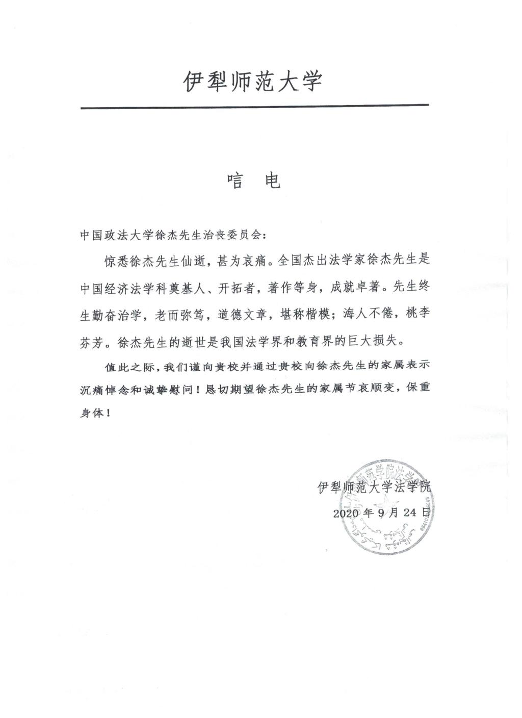 伊犁师范大学法学院唁电