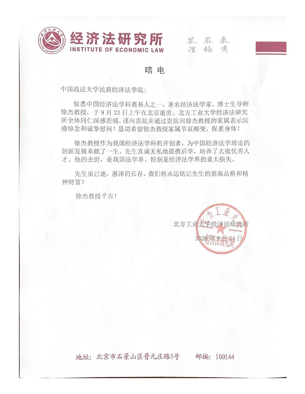 北方工业大学经济法研究所唁电