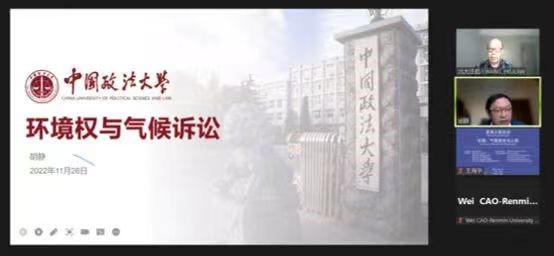 副院长兼环境资源法研究所所长于文轩教授和副所长胡静教授在线参加论坛并发表主题演讲。