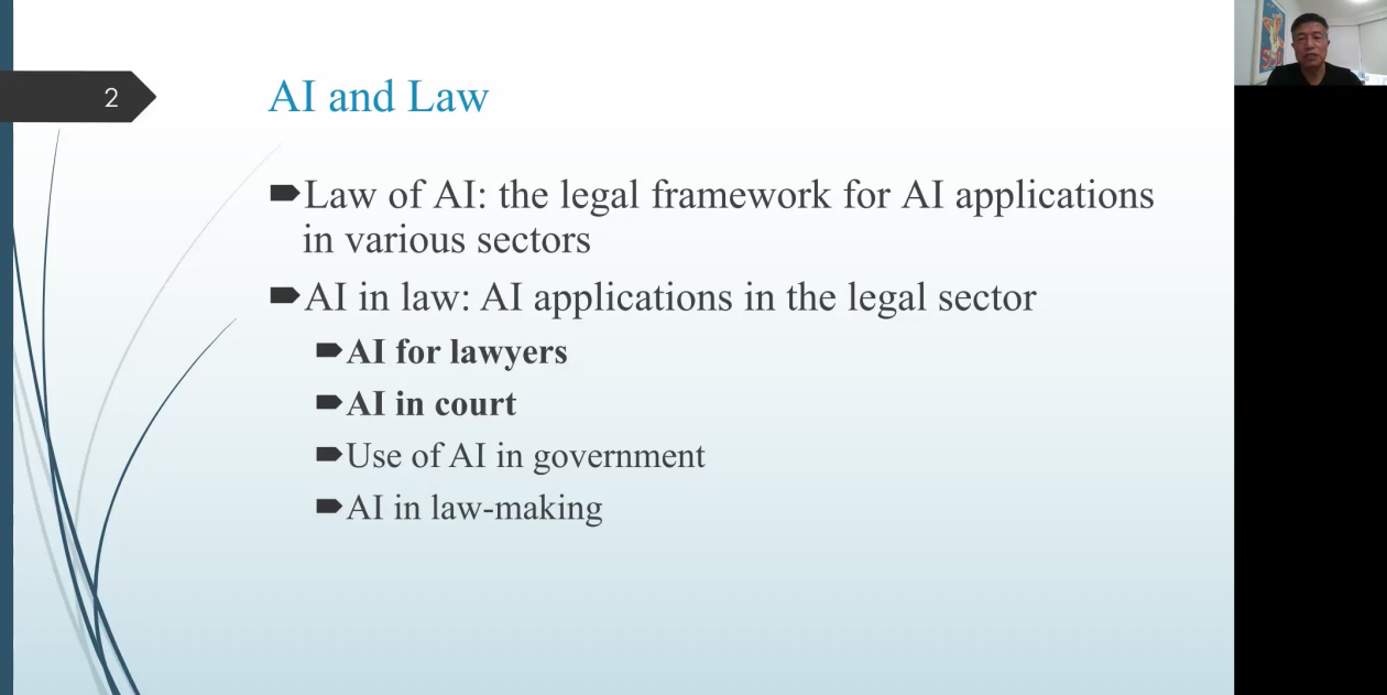该讲座分为两个部分展开,第一部分为人工智能的法律问题。人工智能在各行各业的应用产生了一些新的法律问题,需要法律从业人士来进行研究和探讨。第二部分为如何在法律领域中应用人工智能,该部分又可细分为律师、法院系统、政府部门、立法这四个领域。