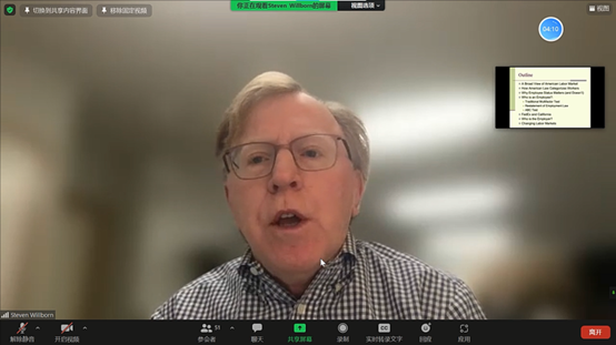 2022526日晚,黑料网 邀请国际劳动法杂志协会(International Association of Labour Law Journals)主席、美国内布拉斯加大学法学院前院长Steven L. Willborn教授在线举办了题为“美国劳动法上劳动者的界定:工作与法律的变化”的精彩讲座。Steven Willborn教授兼任劳动与社会保障法国际协会美国分会(International Society for Labour and Social Security Law United States Branch)秘书长和《比较劳动法与政策杂志》(Comparative Labor Law & Policy Journal)编委会成员,在劳动法研究领域享有国际学术声誉。