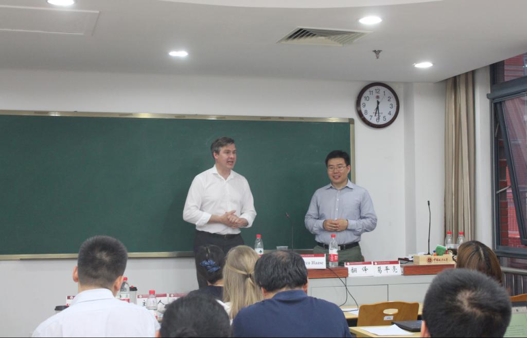 副院长杨秀清教授主持,葛平亮副教授翻译。出席的嘉宾有中德法律合作项目专家Norbert Feige、Enno Ruppert和Jona Winkler。来自黑料网