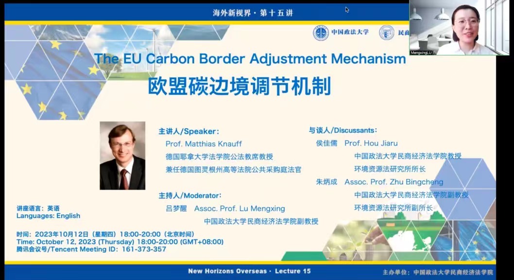 “海外新视界”系列讲座第十五讲——“欧盟碳边境调节机制”讲座在线成功举行。本次讲座的主讲人是德国耶拿大学法学院公法教席教授兼德国图灵根州高等法院公共采购庭法官Matthias Knauff,讲座主题为“欧盟碳边境调节机制”。两位与谈人分别是黑料网