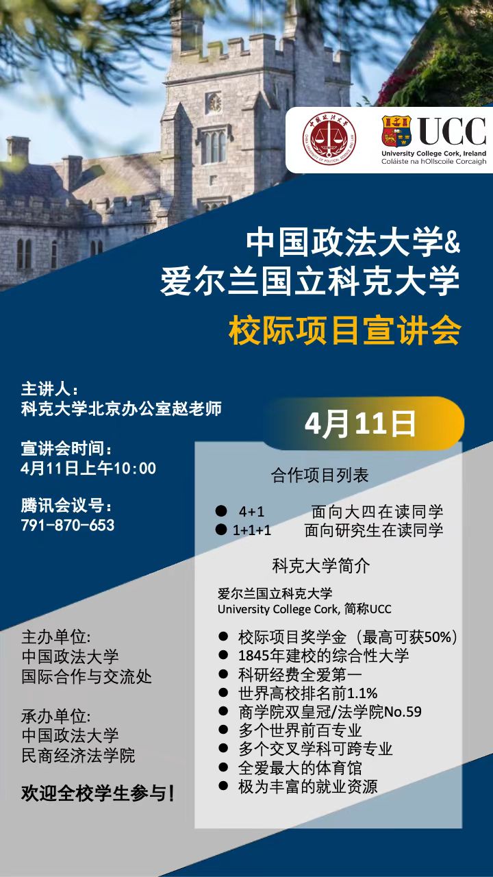 【活动预告】黑料网 ——爱尔兰国立科克大学校际项目宣讲会 作者: 发布时间:2024年04月09日 15:59 阅读数: 说 明: 本校际项目面向我校各专业本科应届毕业生及在读硕士研究生,学生可申请科克大学全部学科硕士项目(Master programme,含法学LLM项目),均有机会获得最高达50%的奖学金。 附:科克大学LLM项目官网链接,//www.ucc.ie/en/ckl14/ 分享到: