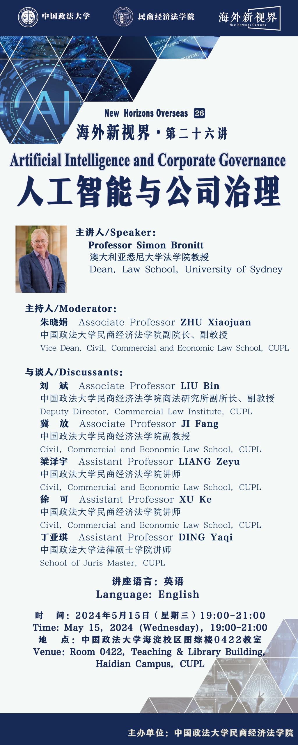 【讲座预告】“海外新视界”第二十六讲 | 澳大利亚悉尼大学Simon Bronitt教授:人工智能与公司治理