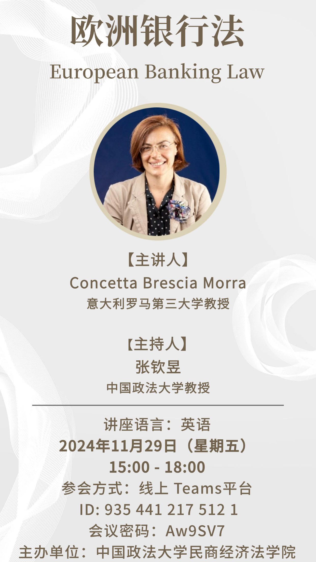 【讲座预告】意大利罗马第三大学Concetta Brescia Morra教授:欧洲银行法